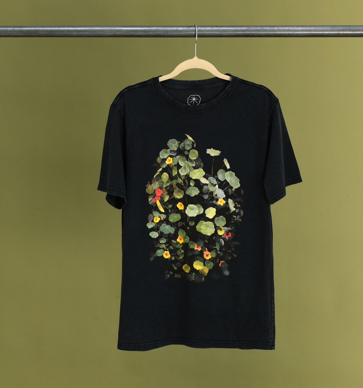 Edición impresa a tinta sobre polera color negro/ acid wash, unisex, 100% algodón.